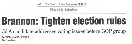 Shortly after the election canvass, Jim Brannon and his supporters identified that the state’s election laws do not specify when an election has ended. In Brannon’s case, did it end on the evening of November 3, 2009, after the ballots had been counted? Or did it end on November 9, 2009, when the Coeur d’Alene Mayor and City Council rubber-stamped the vote tabulations provided by the Dan and Deedie Show? Or did it end on January 5, 2010, when District Court Judge Simpson authorized the new City Council to be sworn in?